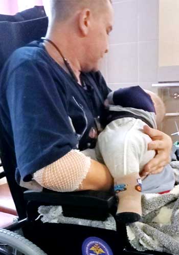 Десятки операций, бесконечные уколы, капельницы, перевязки, протез вместо утраченной ноги, попытки спасти ступню другой. Все бесконечно долго, бесконечно муторно… Но, когда однажды выкатился из палаты в коридор, понял, что у него не самый тяжелый случай. По коридору брел слепой боец, совершенно без рук, он не мог держаться ни за стенку, ни за товарища, обхватившего его. Настроение, понятно, лучше не стало, но смог осознать, что и такой он сможет многое, что он нужен дома, нужен Вале и детям, они, как могли, поддерживали в папе желание жить. Помогла встать с постели двоюродная сестра Света, она каждый выходной приезжала из Подмосковья, два часа в одну сторону, два – в другую. На 30-летие брата прямо в палате накрыла праздничный стол с любимой селедкой под шубой и тортом. Полакомился почти весь этаж вместе с медперсоналом.