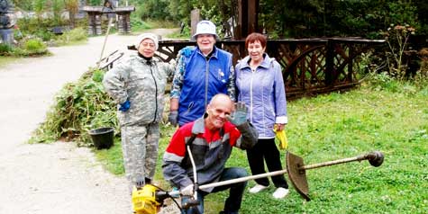 Ранним утром был предоставлен автобус, и вместе с председателем общества Валерием Борисовичем Соболевым и реабилитологом Галиной Владимировной Патласовой мы с отличным настроением поехали трудиться. По приезде нам показали фронт работ. Травы увядшей было много, но мы потихоньку справились.