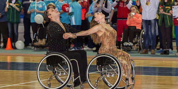 Началось выступление Ксении Гиниятуллиной и Павла Кравченко из ансамбля спортивных танцев на колясках «Гротеск» с танцем под песню «Может, я — может, ты», который они показали на Кубке континентов мира–2016 по танцам на колясках в сентябре 2016 года в Санкт-Петербурге.