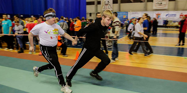 Вдоль трибун тянется огороженная дорожка — здесь идет состязание в беге на 60 метров. В нем принимают участие спортсмены с ДЦП, ампутацией рук и другими физическими ограничениями. Видно, как напряжены лица, как трудно дается многим дистанция, но они не сдаются, проявляют свою волю — и бегут до конца.
